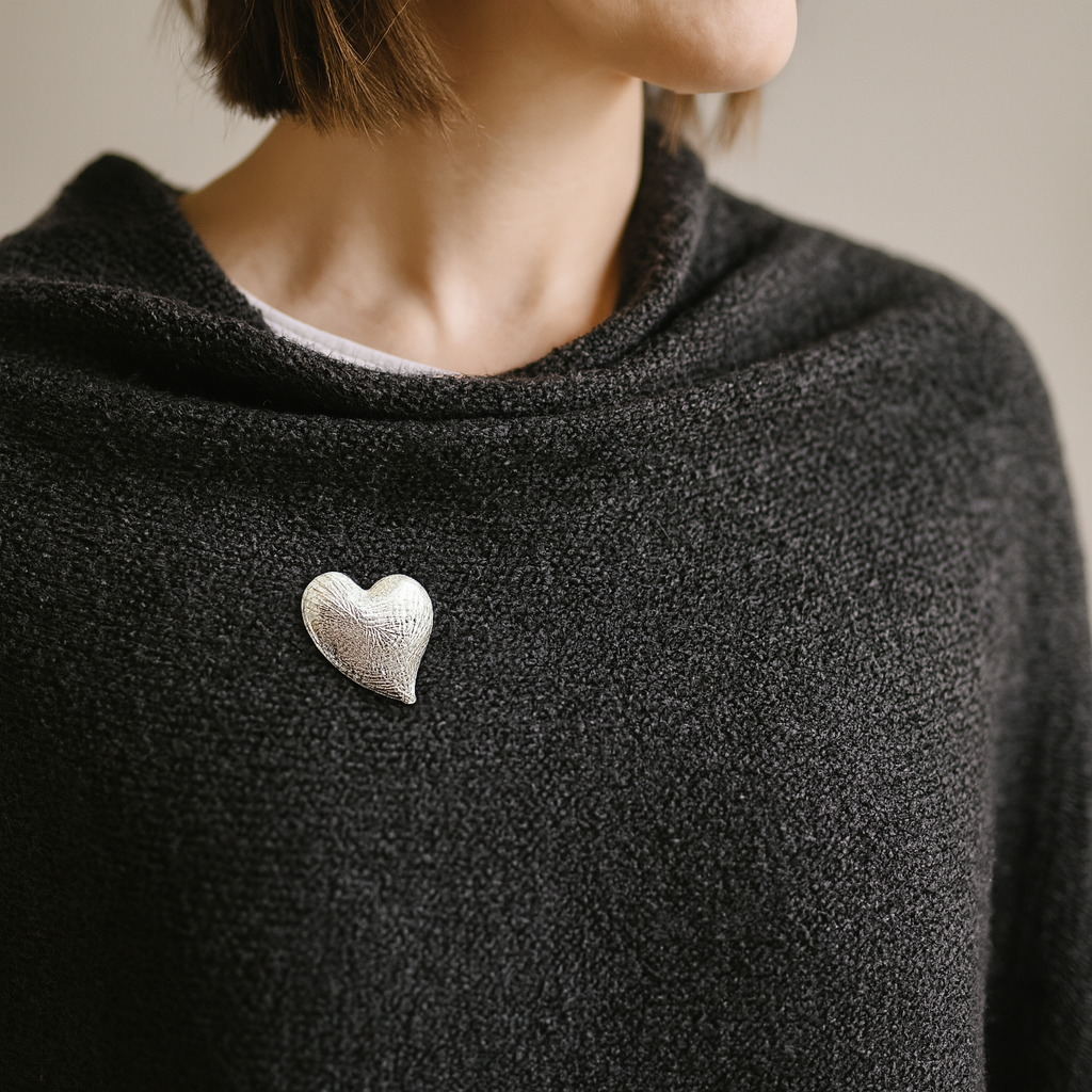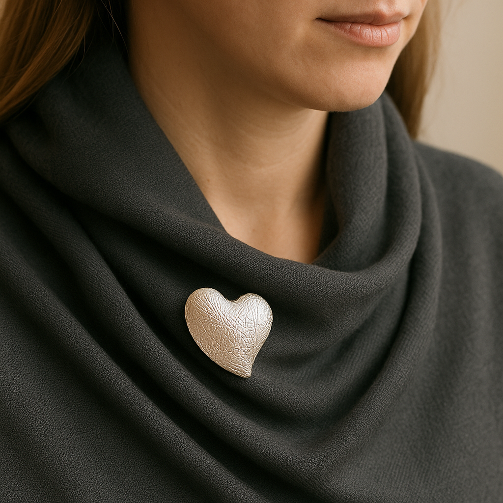 Magnetbrosche Herz – Versilberte Magnetbrosche für Tücher, Loops & Kleidung