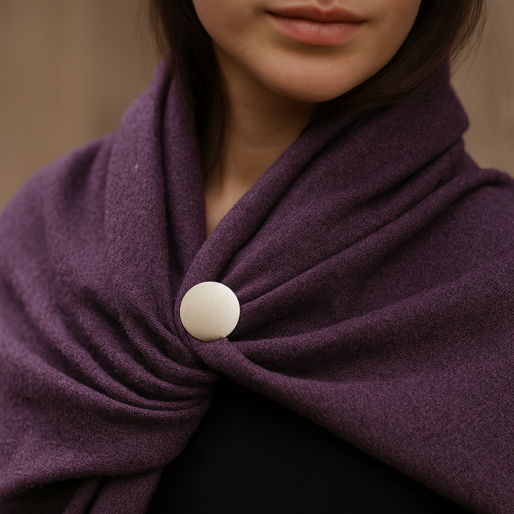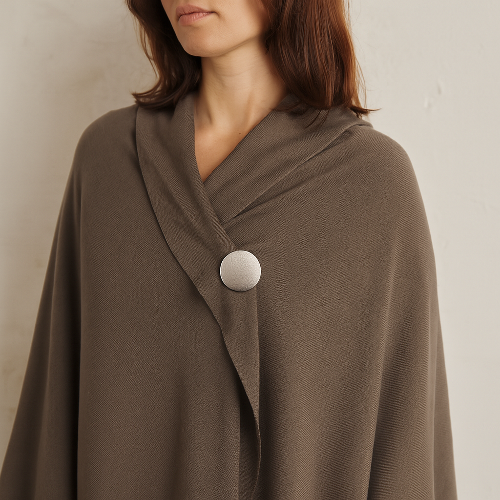 Diese elegante Magnetbrosche in Kreisform vereint stilvolles Design mit praktischer Anwendung. Die versilberte Oberfläche sorgt für einen edlen Look und passt perfekt zu Schals, Tüchern, Blusen oder feinen Stoffen – ganz ohne Löcher oder Nadeln.